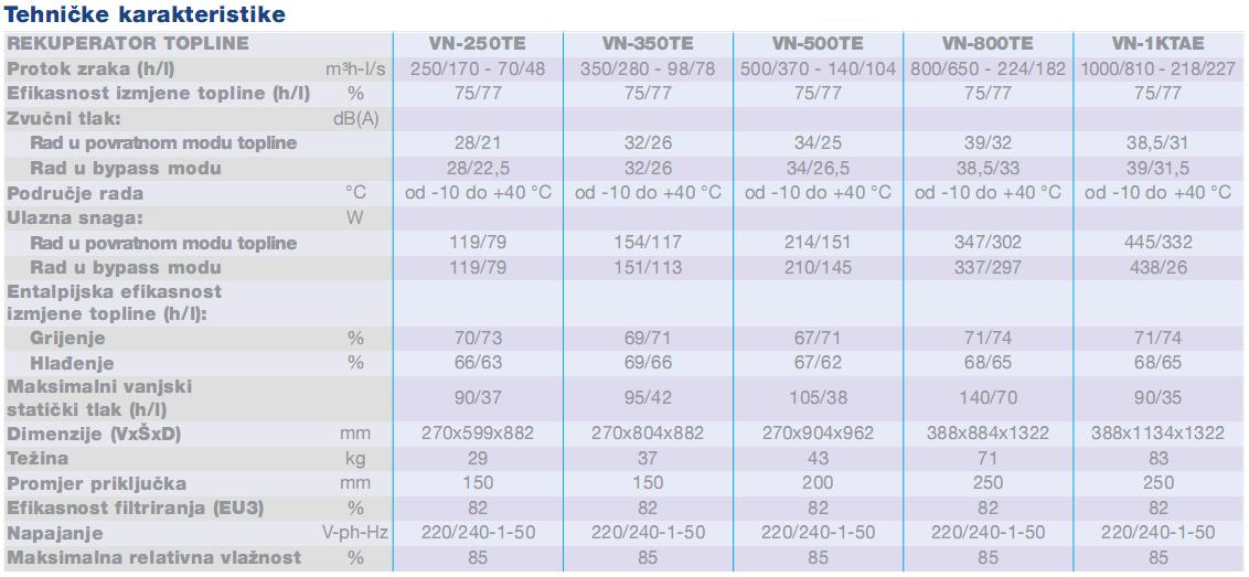 Model | Zvučni tlak db(A) | Priključna snaga(W) | Protok zraka(m3/h) | Dimenzije V/Š/D(mm) |