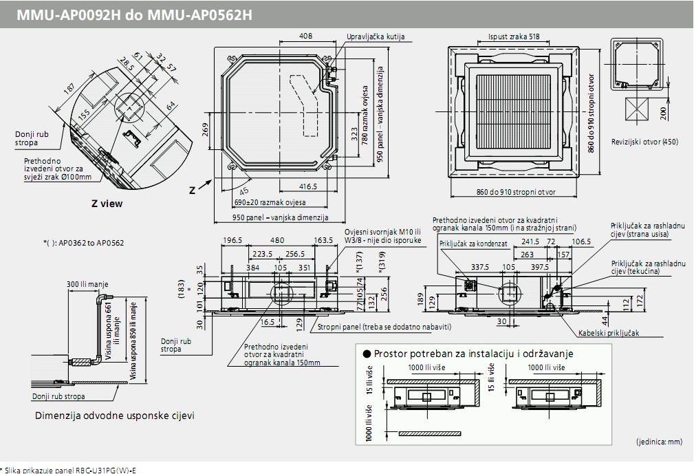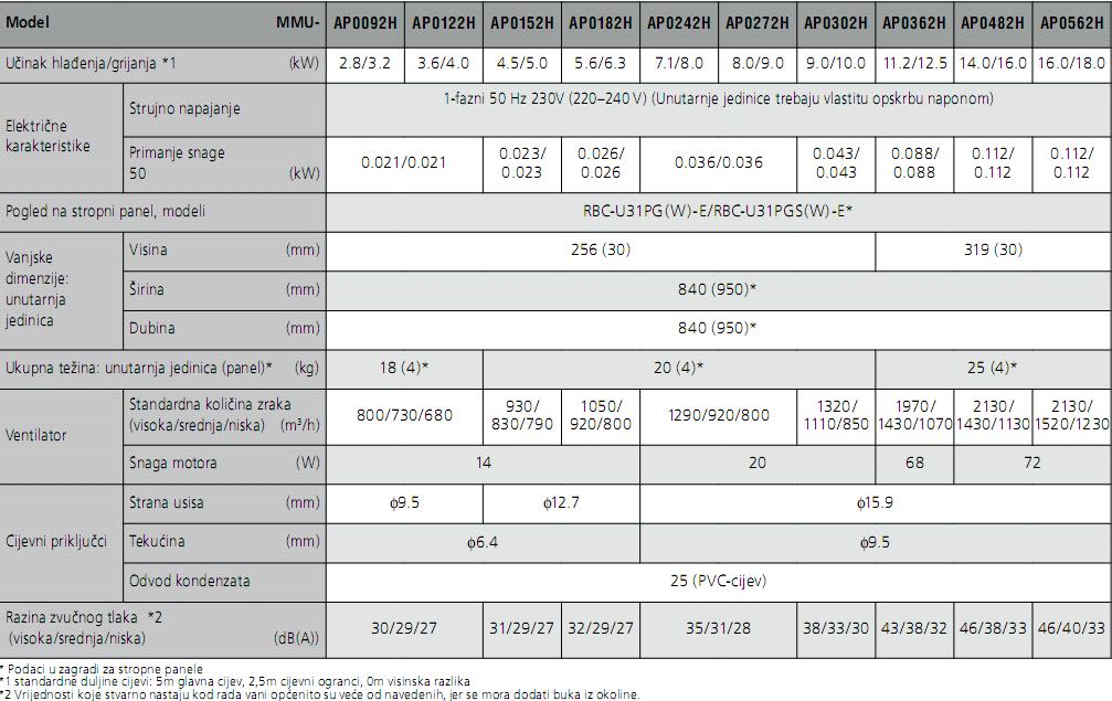 Napomena: Uz jedinice se isporučuju paneli RBC-U31PG(W)-E i RBC-U31PGS(W)-E