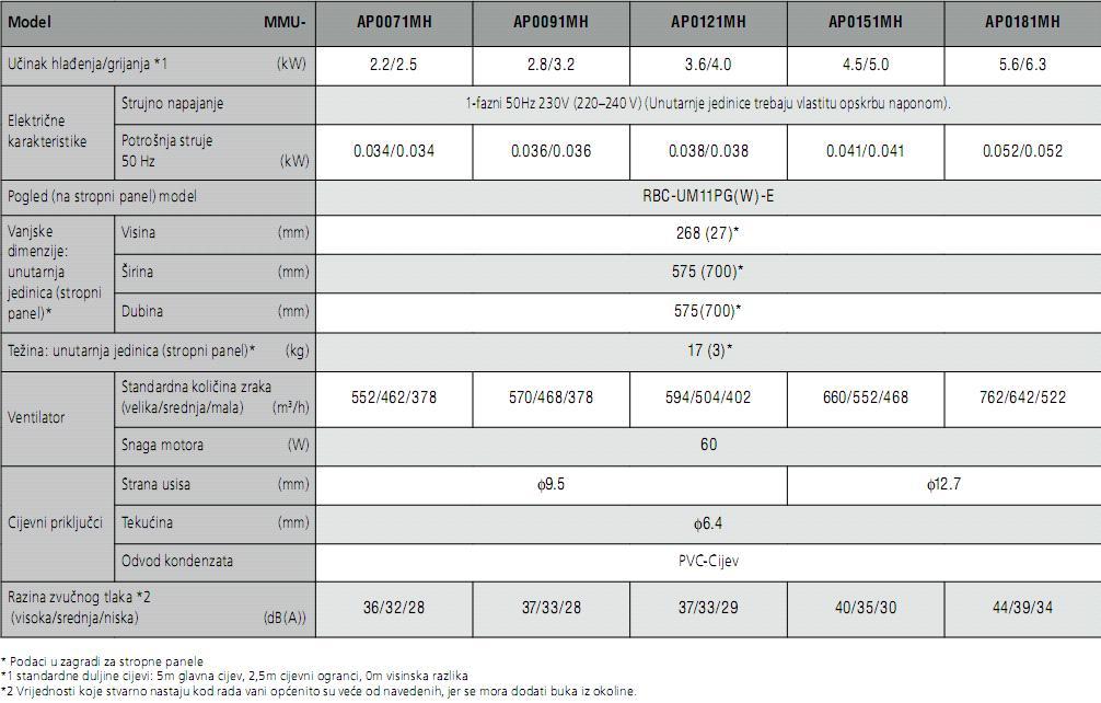 Napomena: Uz jedinice se isporučuje panel RBC-UM11PG(W)-E2 po cijeni 1.600,00 kn + PDV